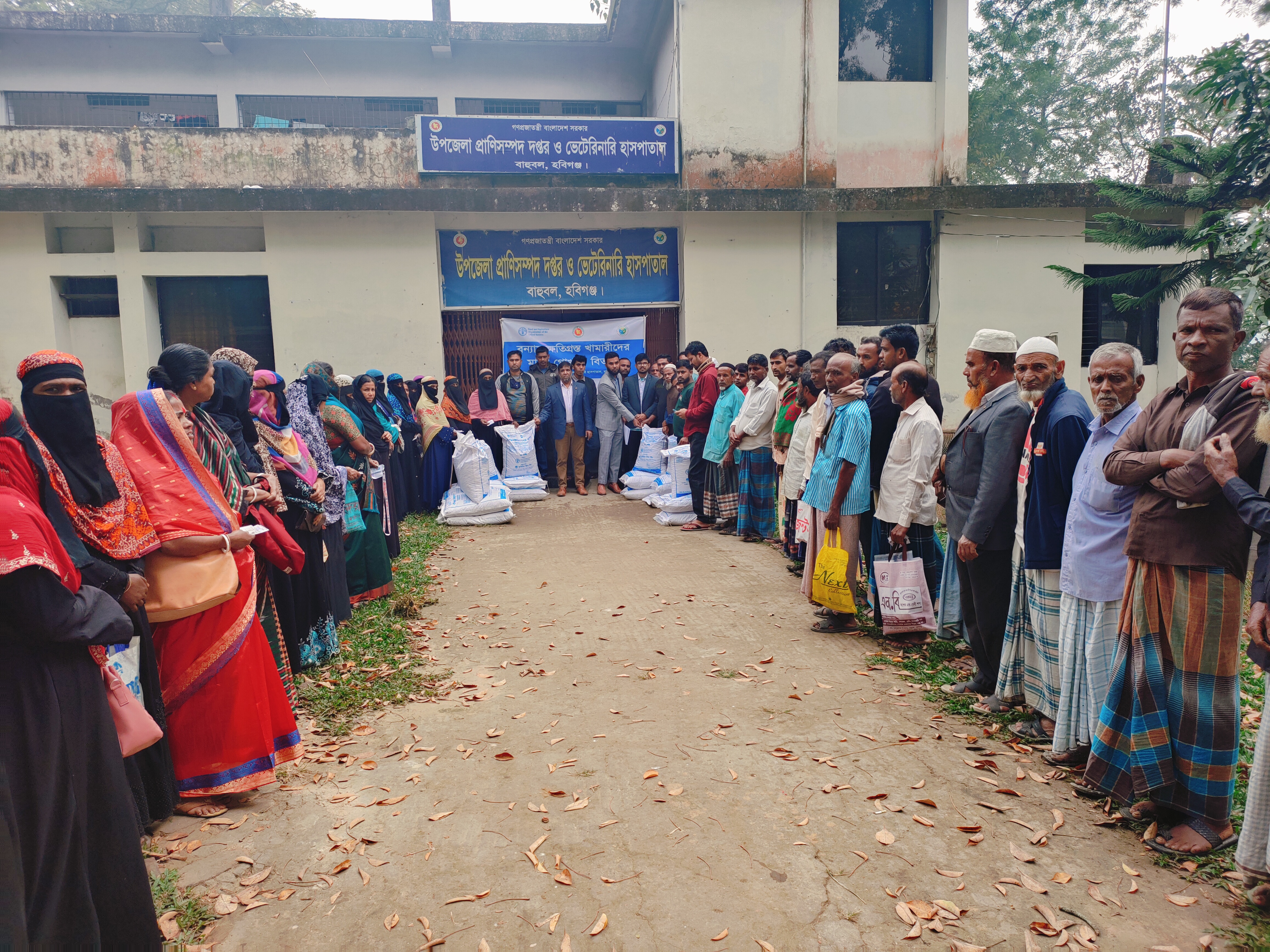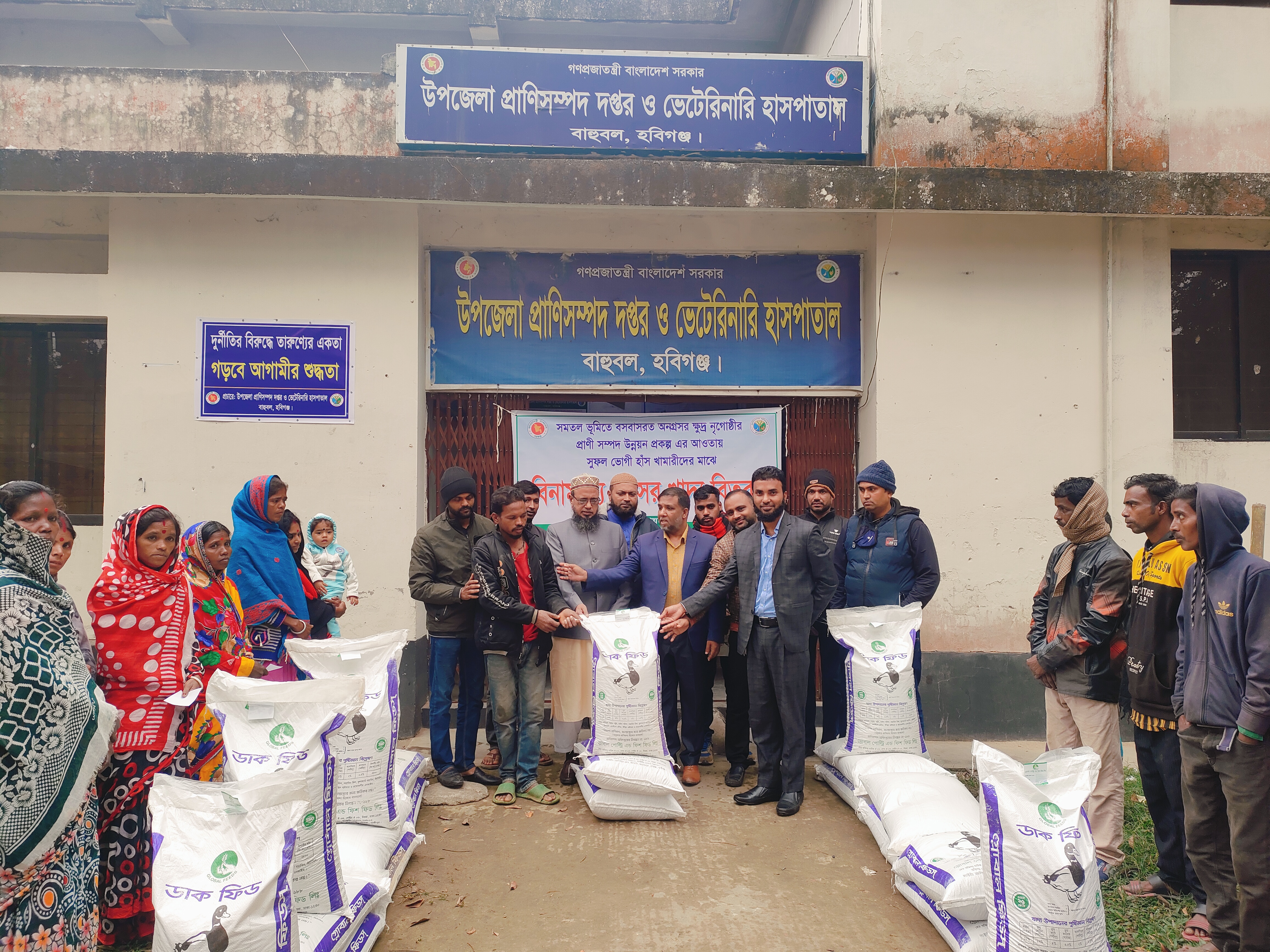 বন্যায় ক্ষতিগ্রস্ত খামারীদের গো খাদ্য বিতরণ